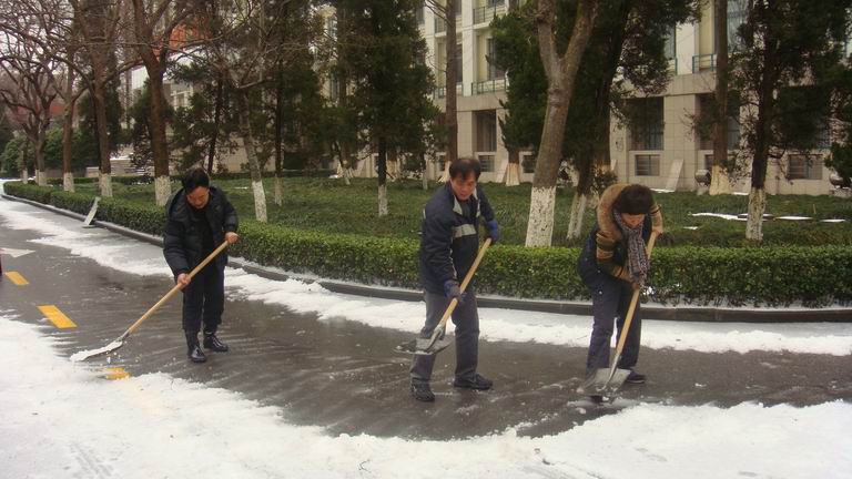 2010年2月12日上午,在接到学校的清扫积雪通知后,红是一世手机版足球网党委书记王中银,副院长、工会主席聂东林立即组织学院部分教职工投入包干区的扫雪工作中,大家在扫雪工具短缺的情况下,积极想办法,创造条件快速清扫道路上的积雪,保证行人的行走安全。