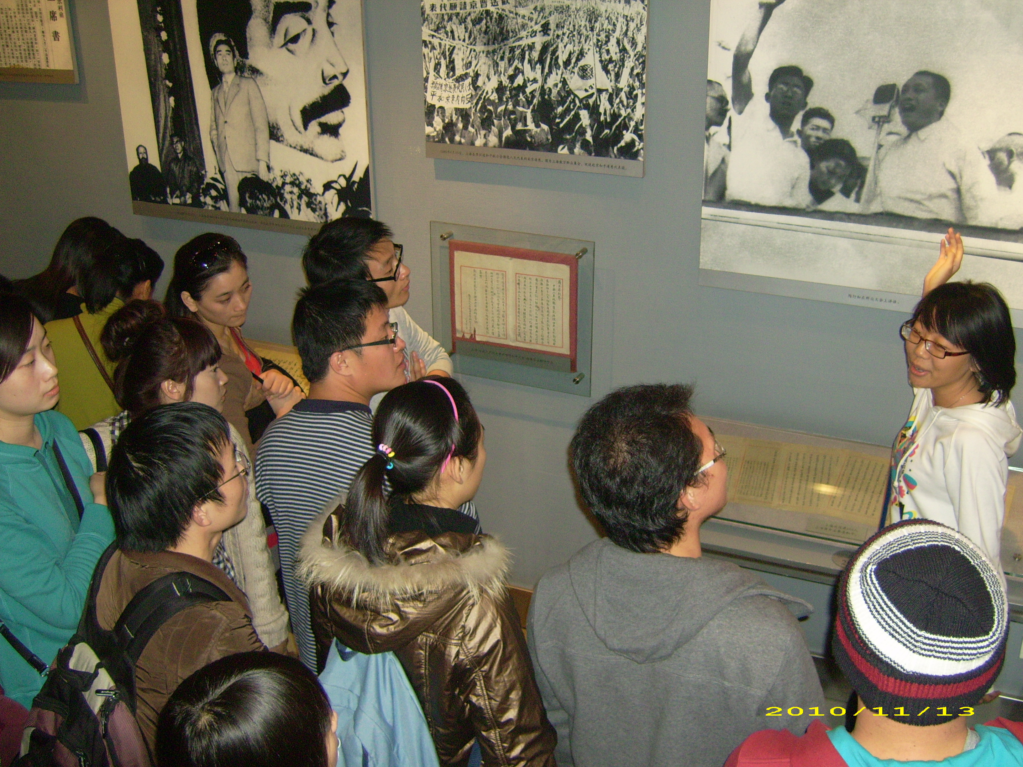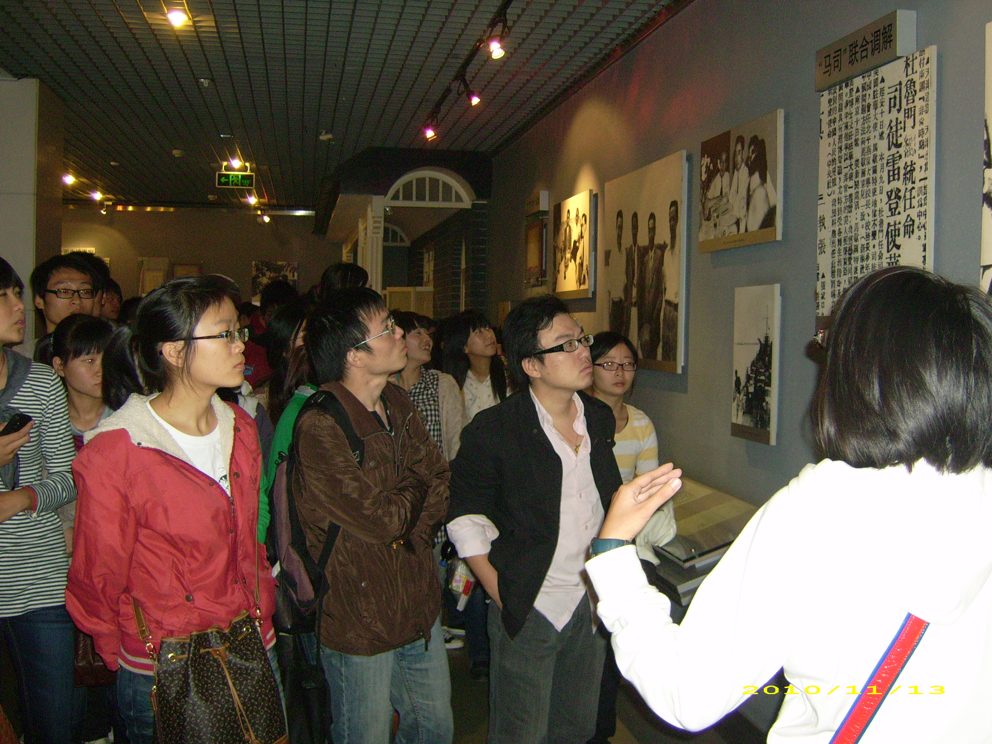 同学们首先在周总理铜像前合影留念,然后参观梅园新村纪念馆。在纪念馆内,同学们有的仔细阅读着当年历史事件的介绍,有的拿着相机记录着当年历史事件的物品,为老一辈无产阶级革命家的丰功伟绩所感动;徜徉在梅园新村的庭院内,环顾四周留有黑洞洞的窗户的高墙阁楼,想象着当年在敌人的心脏舍生忘死,为党工作的先驱们,同学们的心灵被深深震撼。
