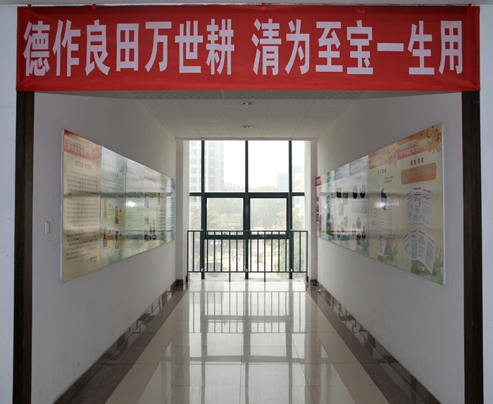 2011年4月学院党委在10号楼三楼平台举办党风廉政建设展览,内容分为“警言育廉”、“谈心促廉”、“制度保廉”、“学习思廉”、“会议讲廉”、“网络传廉”、“文化养廉”以及林则徐爱国名言、包拯清廉拒馈“不持一砚归”的廉政故事等,目的在于深入开展“创先争优”活动,深入推进学院党风廉政建设和廉政文化建设,教育全体党员,特别是党员干部增强党性原则,廉洁自律,勤奋工作,深刻领会“清正在德,廉洁在志”、“德作良田万世耕,清为至宝一生用”的内涵。(王勇)