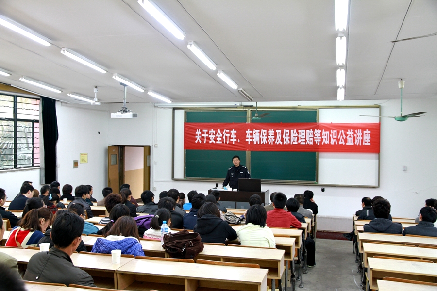 车辆中心吴斌副主任、戚风林调度也分别向大家详细讲解了保险理赔、车辆保养的相关知识。他们的讲课准备充分、条理清晰、内容丰富、语言诙谐,现场气氛轻松、愉悦,受到老师、同学们的特别欢迎。