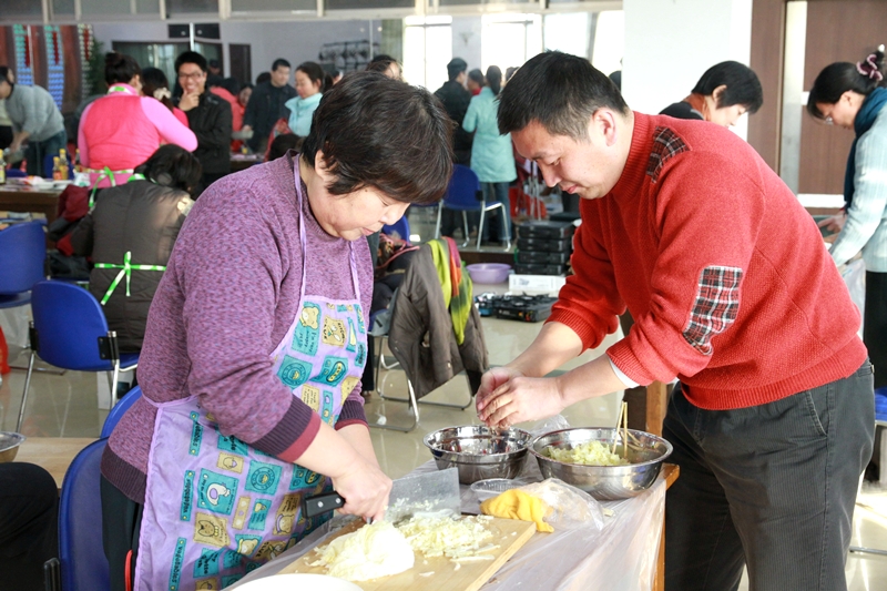 比赛过程紧张而激烈。我院派出了“巧媳妇”队,队员为王晓平、王广兰、秦颇三位老师,他们个个实力超群、身怀绝技,堪称完美组合,剁陷、和面、擀面皮、包饺子、煮饺子等各道工序在他们的巧手下一气呵成,在旁观战的啦啦队也是不断地为他们加油喝彩,一件件饺子工艺品就在他们的巧手下诞生了。我们所包的88个饺子,被工会领导、比赛的组织者、各单位参赛队员及旁观助威者一抢而光,很多没有吃到的老师直喊遗憾。最后经评委评审,我们的饺子皮白、肉满且形状也美观,口味也在各支队伍中位属上乘,得到大家的好评。(刘亚平)