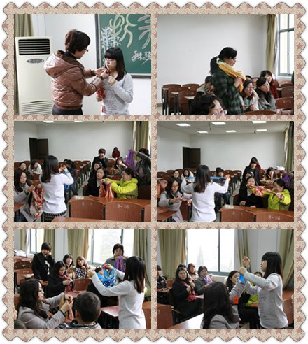 女人如何扮美自己,飘曳于女人颈上的丝巾,总能表现出女人的妩媚、飘逸优雅的气质,所以学院的女工委员精心策划组织了本次活动,于3月13日下午邀请了万事利丝绸有限公