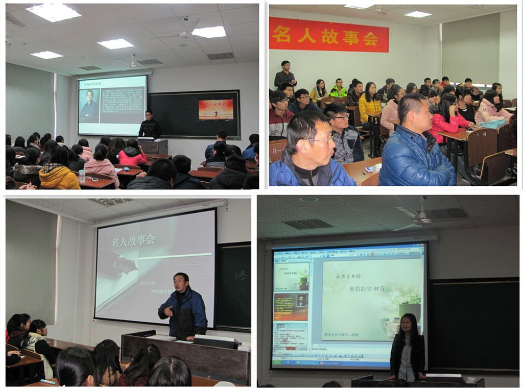 11月28日下午,我院金融、新闻与传播学、汽车服务工程、财务会计与审计等专业的部分新生开展了“名人故事会”主题教育活动。活动由辅导员陈圆平主持,并邀请了学生管理办公室秦颇老师和李学东、邹蓉两位辅导员参加活动。