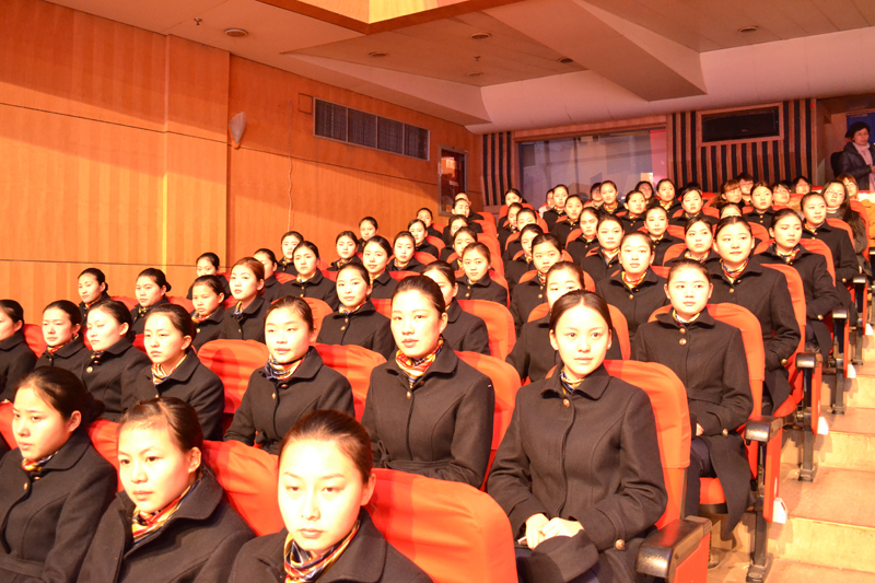 我院女生代表在此次活动中精神饱满,在会场上呈现了一道亮丽的风景线。(李学东)