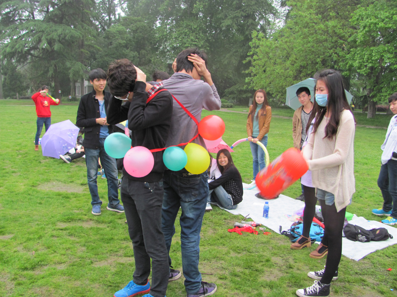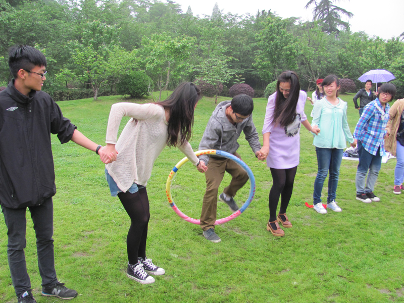 下午2:00,“青春风采,魅力先锋”——素质拓展活动在玄武湖公园开展。活动包括“地雷阵”、“你说我猜”、“乒乓接力”和“呼啦圈大挪移”四个项目。其中,在“地雷阵”环节中,游戏规定蒙上眼睛的同学必须依靠队友的语言指挥穿过布满陷阱的雷区,这充分考验了队友之间的默契程度。活动增进了感情,凝聚了人心。