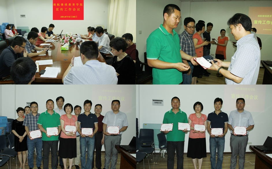 学院党委宣传委员、部门工会副主席王勇同志对学院一年来的宣传报道稿件情况进行了总结。2013年度学院共收到各部门25位老师94篇稿件,其中被南航新闻网采用48篇,被南航教工采用28篇,学院新闻网刊登94篇,校工会《南航教工》稿件统计数据结果显示,学院稿件数量和加权得分连续第三年获得学校第一名。