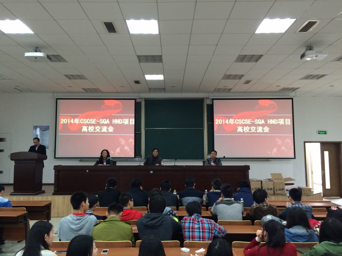 聂东林致辞,他对各位与会代表的到来表示欢迎,并对中国留学服务中心及国外高校对我校SQA HND项目办学的支持表示感谢,同时也希望三方共同努力,培养出更多的人才。贾颖对我校SQA HND项目取得的成绩表示肯定和祝贺,并希望以后更加密切合作将项目做的越来越好。