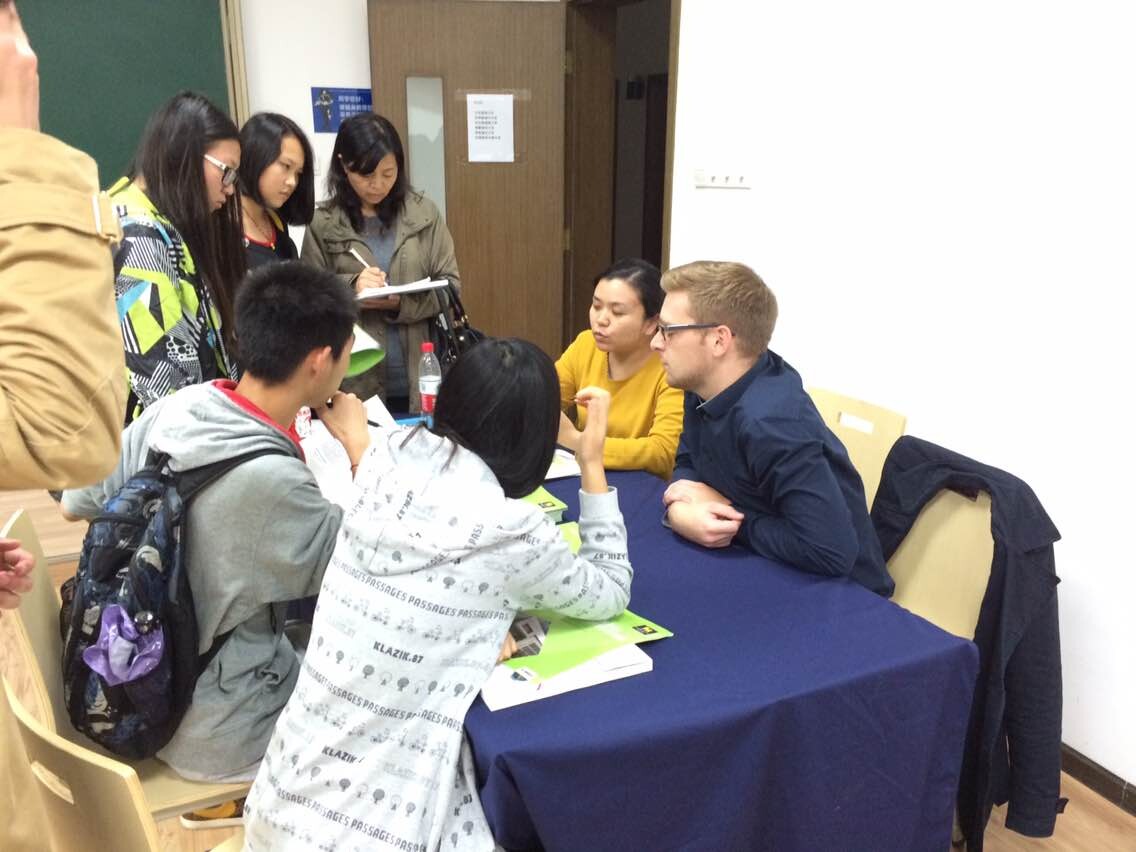 会后,同学们与王鸿逖老师及国外高校代表们进行了面对面的交流。通过交流,同学们对留学方面的有关问题进行了咨询,有了一定的目标方向。(刘超)