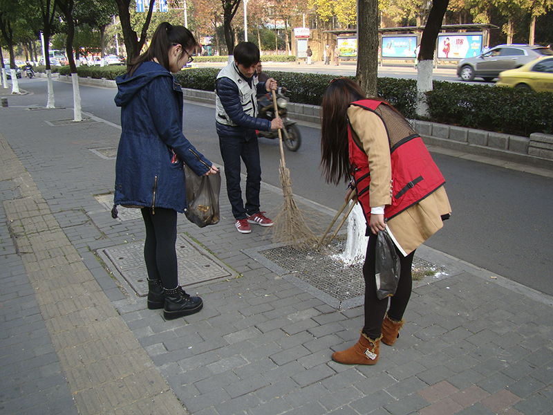 同学们不辞辛劳,用实际行动践行着为人民服务的宗旨,体会着做为一名志愿者服务社会、奉献大众所带来的精神愉悦,感受着为南京市容整洁做出自己的贡献,尽一份力量的自豪。(秦颇)