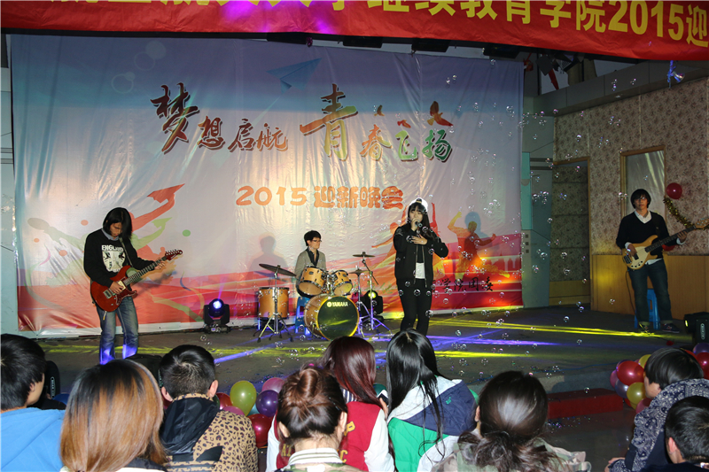 一首红遍大江南北的“小苹果”瞬间点燃了现场气氛,欢快过后,各位帅哥美女齐上阵,热辣的舞姿吸引了全场的眼球,紧接着,一段“我是歌手”的相声表演引得现场观众笑声连连,欢快的气氛下,舞蹈“barbarbar”紧跟其后,继续燃烧舞台,歌曲串烧环节中,台上的歌手倾情演唱,恍若明星大腕,璀璨生辉,充满青春活力的“全民社会摇”,用年轻的姿态,绽放的热情,带领着老师们在舞台上狂呼起舞,惟妙惟肖的“孔雀舞”,使到场观众无不叹服,“男生宿舍的蜕变”真实的反映了宿舍宅男们的生活,学院社团逼真的cosplay,霸气的双截棍表演,炫酷的B-box等,将气氛推至顶峰,一首“我的南方与北方”使我们感受到了朗诵的魅力,在音乐社的三首串烧歌曲中,晚会落下了帷幕。
