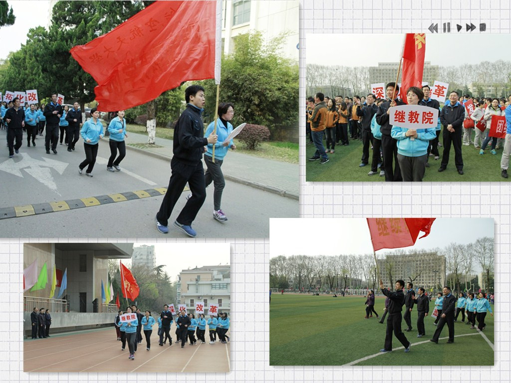 红是一世手机版足球网教职工按照指定的位置,4人一排,以饱满的精神状态,迈着矫健的步伐走进体育场。发令枪响后,学院领导跑在队伍的最前面。在“一、二、三、四”的口号带领下,大家的整齐的步伐发出了铿锵有力的共鸣声音,“深化改革 开拓创新”“超越梦想 继续飞翔”的口号,喊出了学院全体教工奋发向上、勇于拼博的精神风貌,喊出了大家对学院的期待及美好祝愿,每个教职工的脸上都洋溢着笑容,犹如杨朔散文《茶花赋》中孩子们的笑脸——童子面茶花开了。