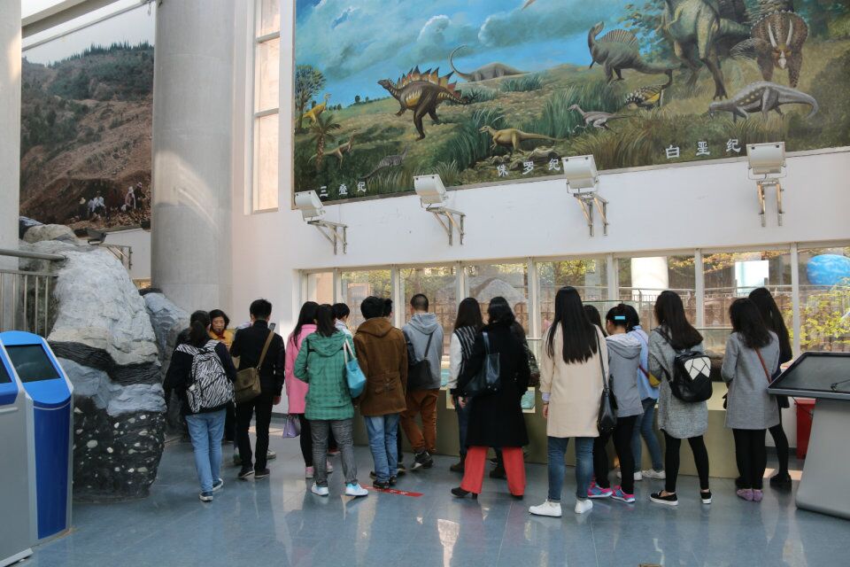 在徐老师的带领下,同学们登上了由南京地质状况和部分生物化石构筑的“上山之路”。穿越“地质长廊”,看到庞大而细致的生物群复原模型,一场又一场物种演变及灭绝景象,充分说明了“物竞天择,适者生存,世道必胜,后胜于今”的千古之道。古生物、古植物的足迹、它们的生命气息和失去生命的脉络,在时间的酝酿下沉淀为雄厚的历史,那些消逝的生命带给现今的世界不仅仅是一个个研究领域的突破,更是那份对生命的敬畏和震撼。