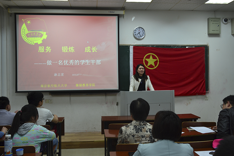 开班典礼结束后,院党委副书记涂志宏为学员们作了题为《服务 锻炼 成长——如何成为一名优秀的学生干部》的讲座。她以鲜活的实例,介绍了多名毕业生的成长故事,启发学员们领悟到一个称职的学生干部所必备的素质、能力和精神,表达出对学生干部的真切期望。讲座引起了学员们很好的反响,感到“收益匪浅” 、“很有意义”,加深了他们对自己人生发展的慎重思考。曾经在入学时与涂志宏有过一面之缘的学员卿婷同学给涂书记发去短信说:“开学报到时我一直在犹豫退学,结果正巧在食堂遇到你,你跟我说:留不留下来,不只是短暂的决定,……真正决定今后四年发展的是你自己的努力。……现在看来,留下来是对的,今天听完演讲之后,我更加清楚该怎么去度过今后的大学生活,老师,谢谢您” 。