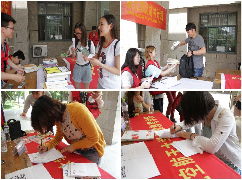 为做好捐赠工作,在10号楼大厅,志愿者们就场地布置做了充分的安排,院青协与院团支书读书会分工明确,各司其职,为活动的正常进行提供了人员保障。他们认真负责,吃苦耐劳,用一张张笑脸,一份份热情诠释志愿精神,对捐赠者提出的问题给与详细解答,并回赠了一枚爱心书签,以作留念。