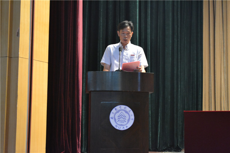 杜传锋、聂东林等领导和老师为新生代表佩戴校徽,台下全体新生也同时佩戴起南航校徽,正式宣告自己成为了一名南航人!