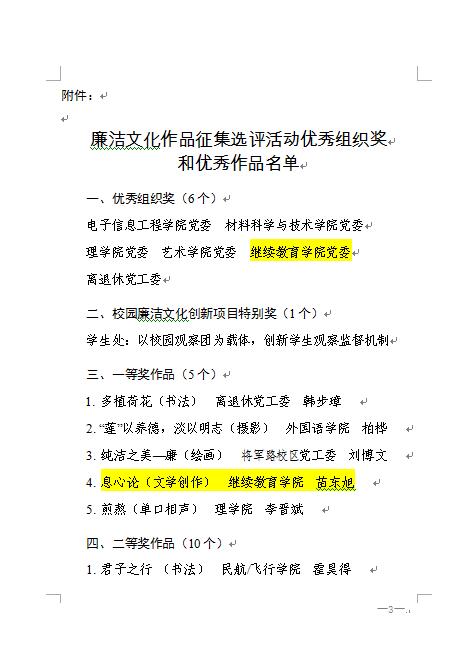 学院党委喜获校廉洁文化作品征集选评活动优秀组织奖