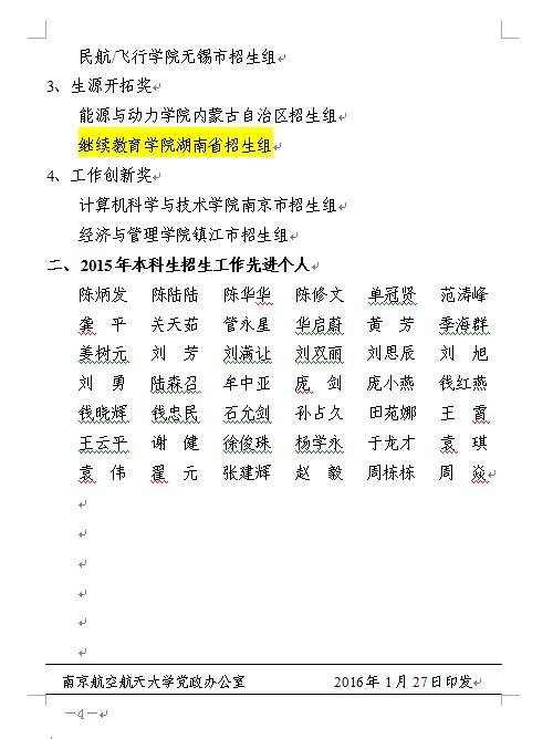 年本科生招生宣传工作取得好成绩。湖北招生组荣获“标兵集体”荣誉称号,湖南省招生组荣获“生源开拓奖”荣誉称号。(王勇)