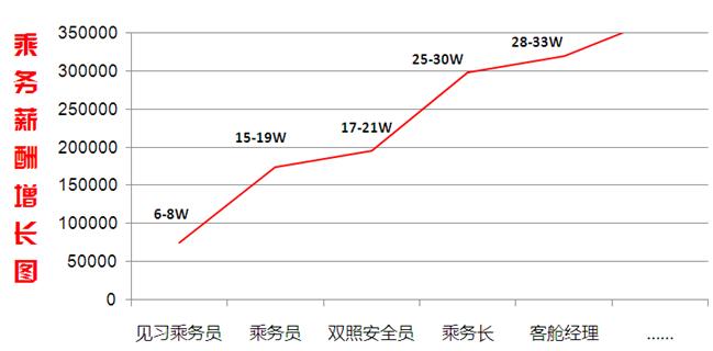 厦航乘务员享有2年单身公寓、免费机组用餐、机组交通保障、年休假、疗养假、八险两金等福利待遇。年薪收入情况如下图所示: