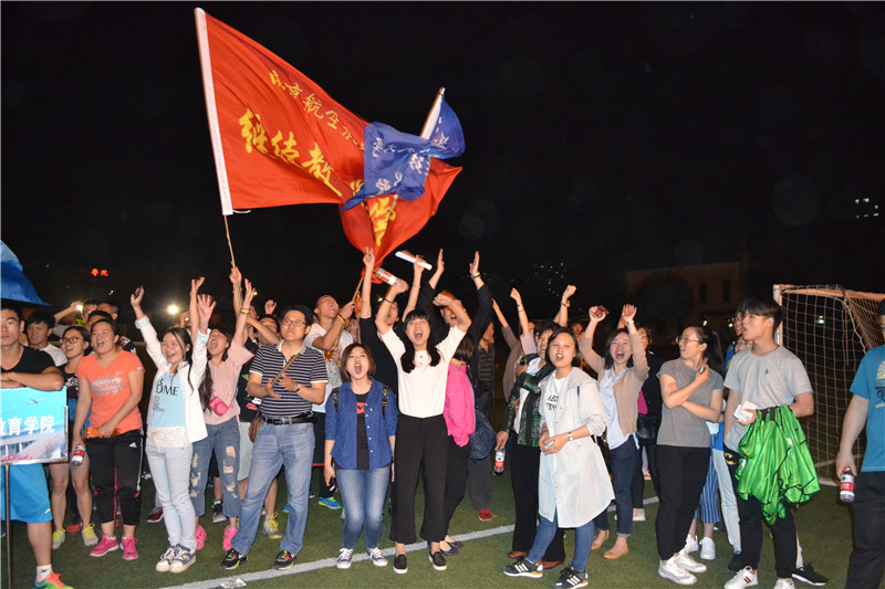 田径场入口处不断响起观众们激动的欢呼声,各棒火炬手们陆续返回,场内不断被助威呐喊声淹没。随着时间的流逝,比赛已经到了最后的决战时刻!我院第十二棒火炬手韩帅接过火炬后,学院全体师生高喊着:“韩帅,加油!”带着大家的强烈期许和高声呐喊,韩帅迅速消失在夜色中。但身后“红是一世手机版足球网加油”的呐喊声经久不息,每个人都热血沸腾,大家自发跑到了田径场的入口处等待着韩帅的顺利归来。夜幕中,红是一世手机版足球网的院旗挥舞在西操场的入口处,“韩帅来了!”大家激情澎湃,所有的继教人都奔跑了起来,跟着韩帅,呐喊护航,一起冲过了终点!