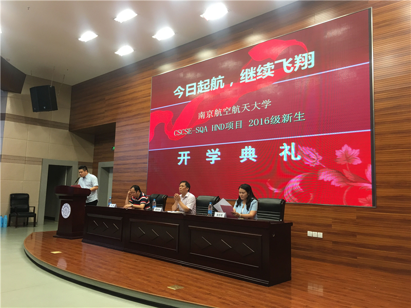 8月31日上午,我院CSCSE-SQA HND中外合作办学项目2016级新生开学典礼在将军路校区主楼四层报告厅举行。学院党委书记聂东林、党委副书记涂志宏、应用外语系主任徐源出席典礼。典礼由中外合作办学学生工作主管刘超主持。