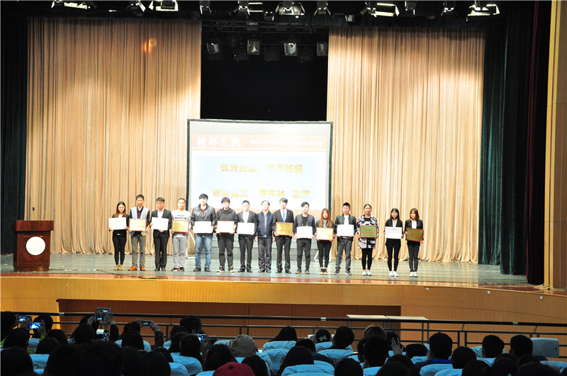 2016年11月21日晚七点,学院2015-2016学年学生总结表彰大会在新大学生活动中心隆重举行。院长杜传锋、党委书记聂东林、党委副书记涂志宏以及各系、部、办负责人、辅导员、合作单位的老师参加了本次表彰大会。参加本次表彰大会的还有近千名大一新生和获奖代表。表彰大会由2016级辅导员陈圆平和2013级学生高寒主持。