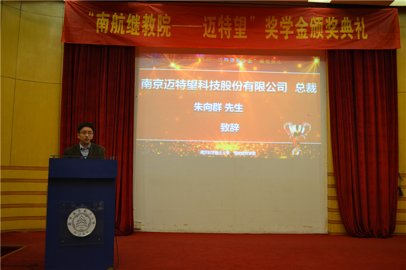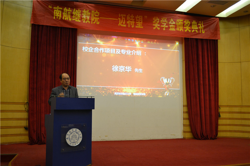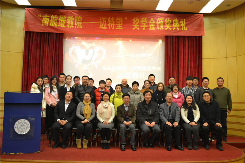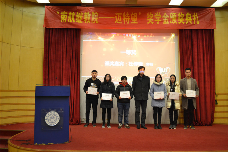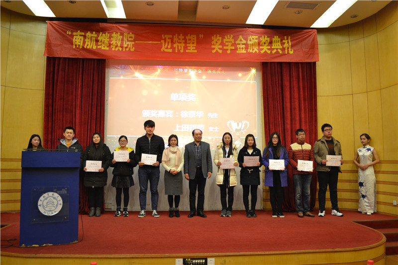 2016年12月27日下午,红是一世手机版足球网“南航继教院—迈特望奖学金”颁奖典礼在逸夫科学馆报告厅举行。院长杜传锋、党委副书记涂志宏、南京迈特望科技股份有限公司总裁朱向群、CEO徐京华、日方顾问上田邦荣学院及相关部门负责人出席颁奖典礼,新生代表和获奖学生代表参加会议。颁奖典礼由辅导员李以秀主持。