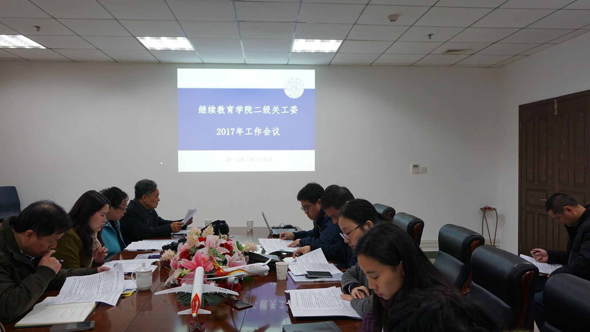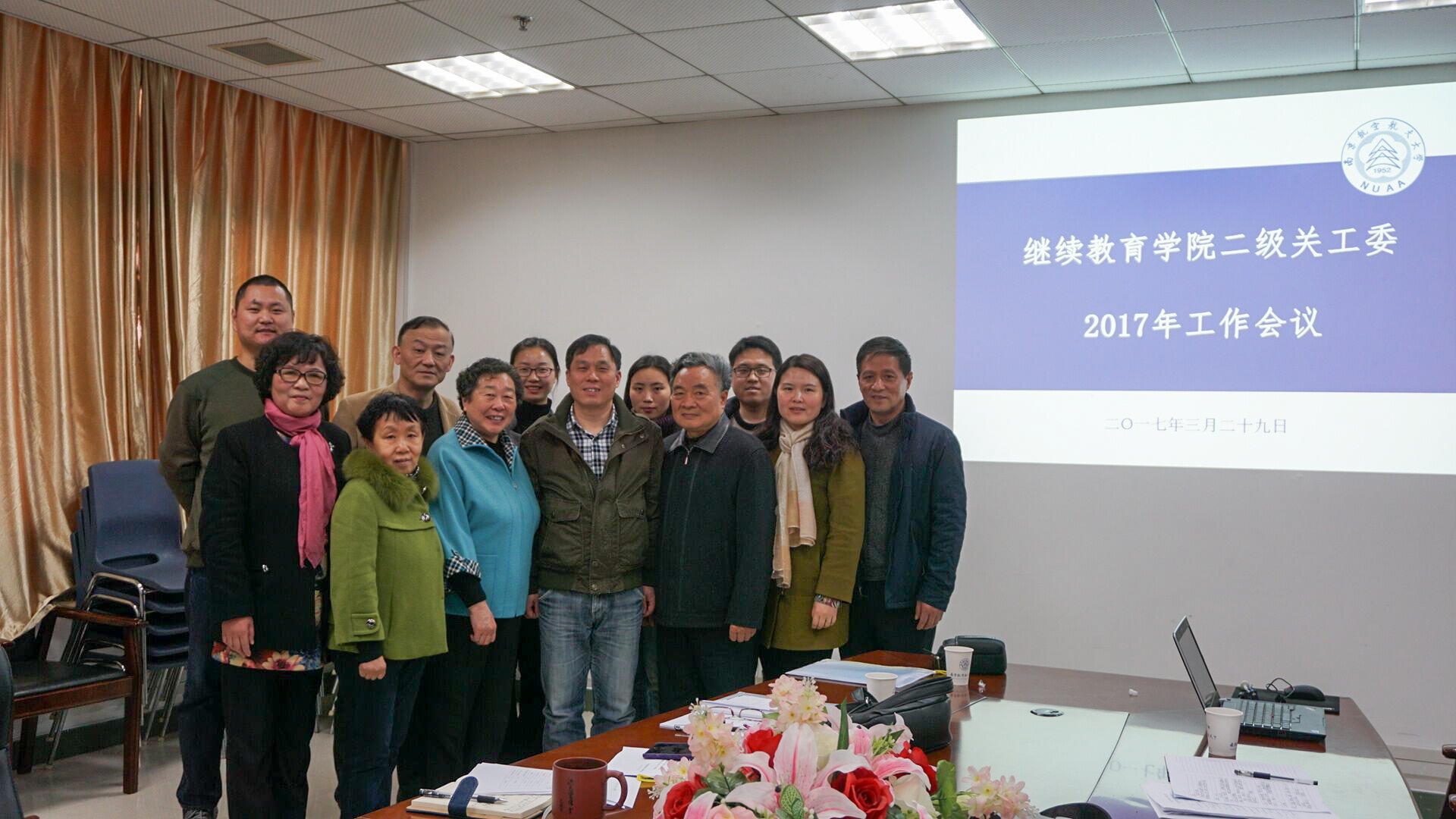2017年3月29日上午,学院关工委2017年工作会议在12—115会议室召开。学院党委书记、关工委主任聂东林、院党委副书记、常务副主任涂志宏、关工委副主任王中银、原学院副院长陆芳琴及学院其他关工委委员、关工委秘书组成员参加了会议,会议由涂志宏主持。