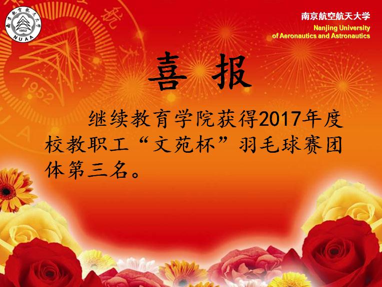 学院获得2017年度校教职工“文苑杯”羽毛球赛团体第三名