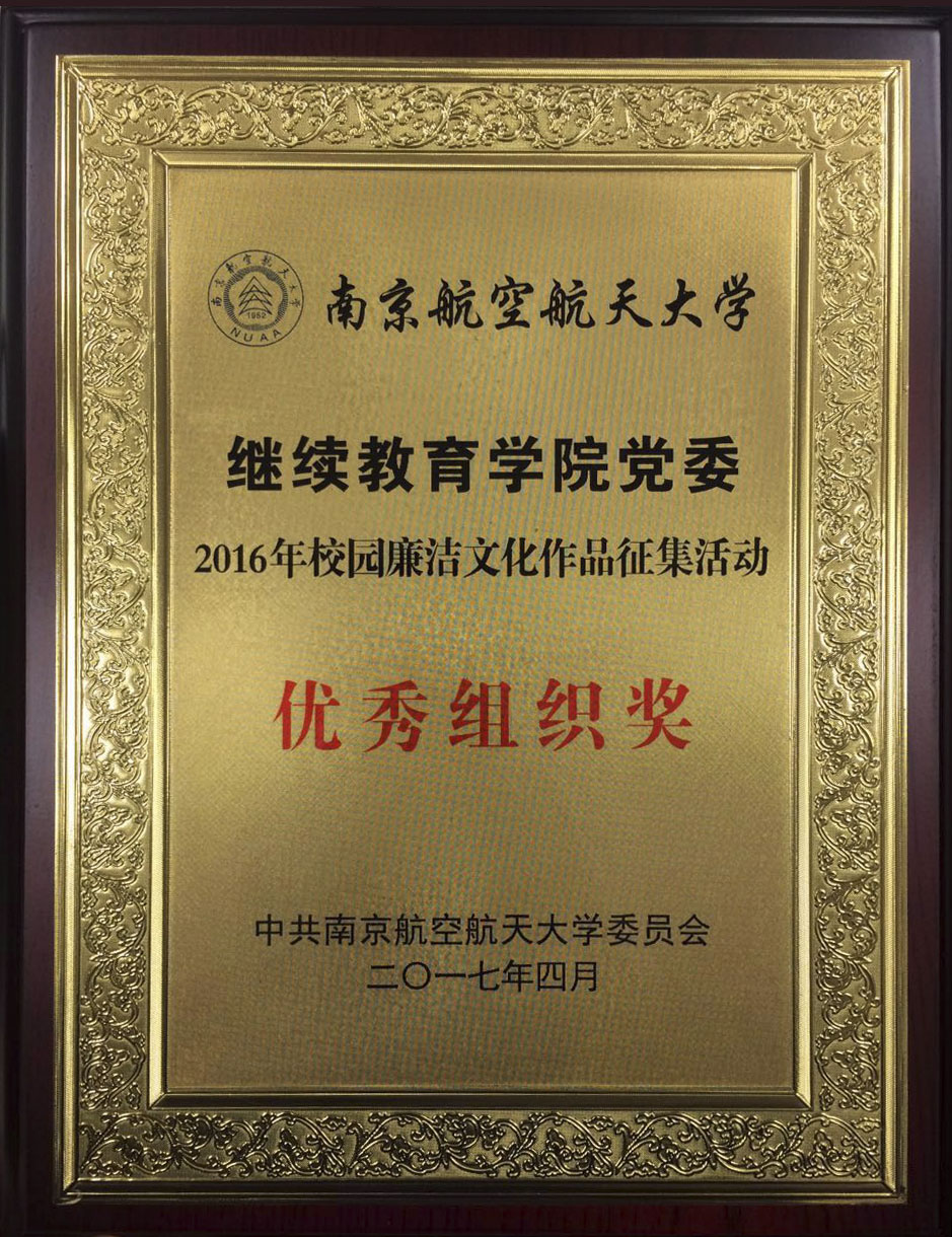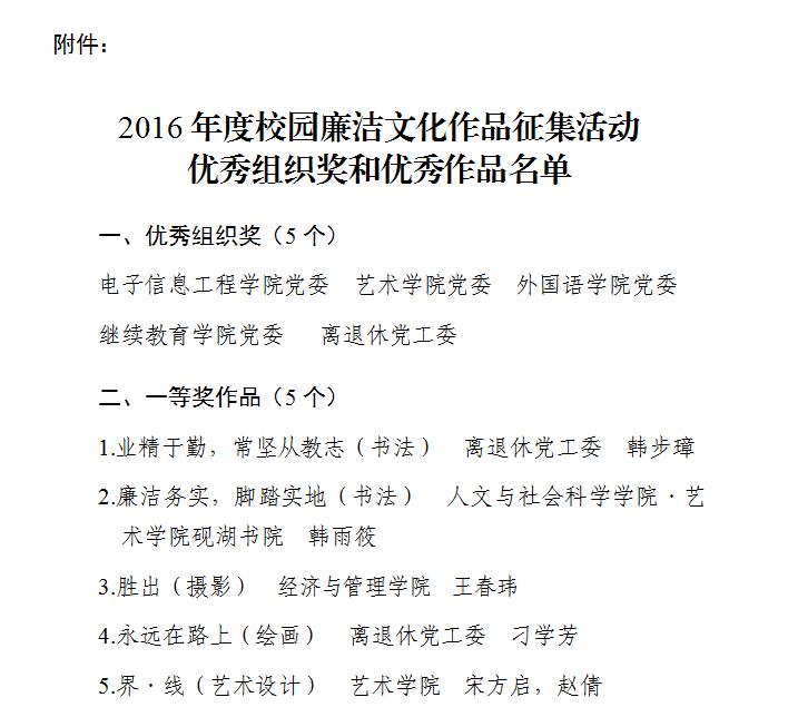 学院荣获校2016年校园廉洁文化作品征集活动优秀组织奖