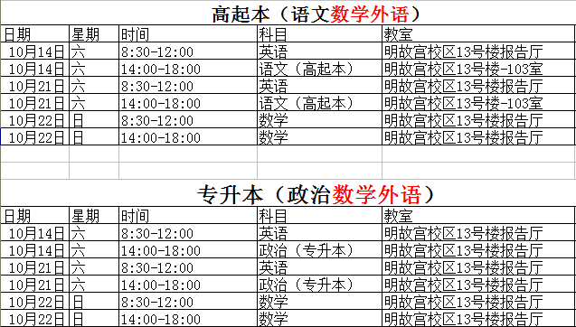 学院为帮助报考我校成人高等教育考生顺利通过考试,开设了成人高等教育辅导班。辅导班课表如下: