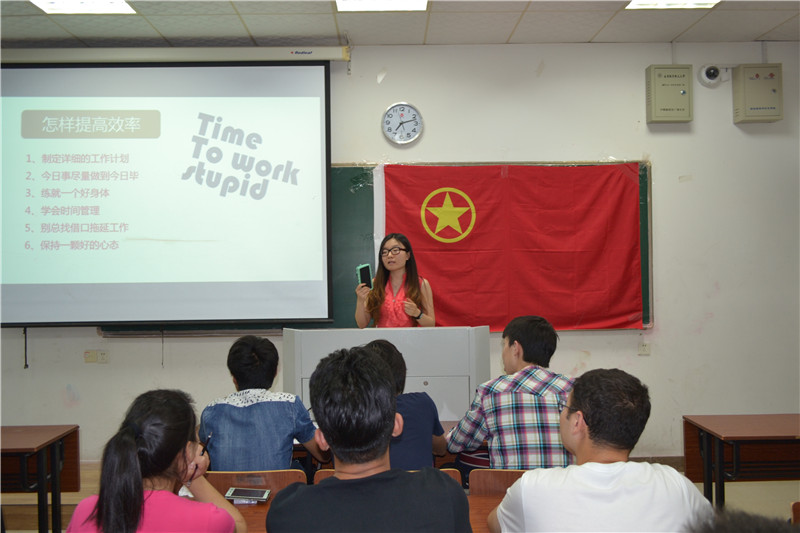 肖俊桂同学以自己的学习工作经历为例,从“热情似火的工作精神”、“优质优量的工作方法”、“精益求精的工作技能”以及“全心全意的工作态度”四大法则,向到场的同学们介绍了如何成为一名合格的学生干部。她指出,所谓热情似火的工作精神就是需要同学们振奋的精神和奋发的状态,在精神的支配下调动身心的巨大潜力,投入到学生工作中去。优质优量的工作方法,最首要的便是“效率”二字,她以自己的亲身经历,叙述了到底该如何提高工作效率,做到事半功倍。同时告诫同学们“学生干部不是万能的,没有必要凡事都去争个NO.1,做好自己的本职工作,尽力而为足以。此外大家还应该明白,你首先是个学生,其次才是学生干部,所以学习永远要放在第一位!” 谈到精益求精的工作技能,她指出相关技能有很多,但是沟通、文案、协作这三项技能对学生干部而言是最为重要的。多参加社会实践,多与他人交流,提高自己的沟通能力;先模仿、后创造,重视文案格式,成为一个能说能写的人;重视团队合作,不要束缚于学生干部的身份,更不要让自己成了“光杆司令”。最后在讲到全心全意的工作态度时,她以“责任心胜于一切”道出了一个学生干部应有的核心素质。