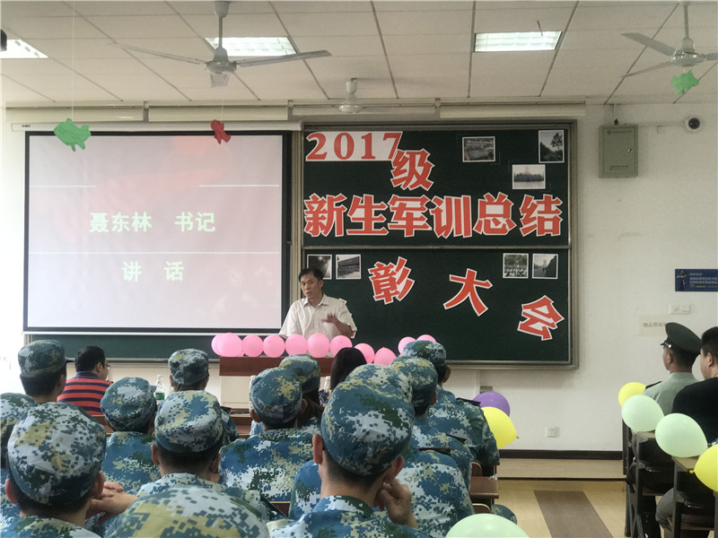 聂东林在讲话中对2017级新生的精神面貌给予了充分肯定。他希望同学们能够将军训中学到的意志、精神和品质投入到大学的学习、生活中去。要有爱心,懂得包容、团结友爱;要有孝心,懂得感恩、尊重父母;要有专心,努力学习、学业有成;要有纪律性,懂得约束、敢于担当;要有责任心,懂得付出、甘于奉献。他期待与教官们相约在几年后的毕业典礼上,共同见证同学们的又一个里程碑,见证自己无悔的青春、无悔的大学生涯。(刘超)