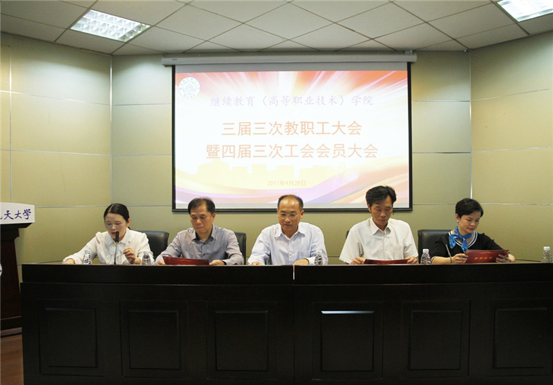 校工会常务副主席袁贵平出席本次会议,他在致辞中表示,学院在党的十九大和校十六次党代会前夕召开此次会议,对增强学院凝聚力、提高教职工的工作积极性、主动性和创造性都具有重要作用,他感谢学院党政领导及学院工会对校工会各项工作的支持,并对学院这次双会的召开表示热烈的祝贺。