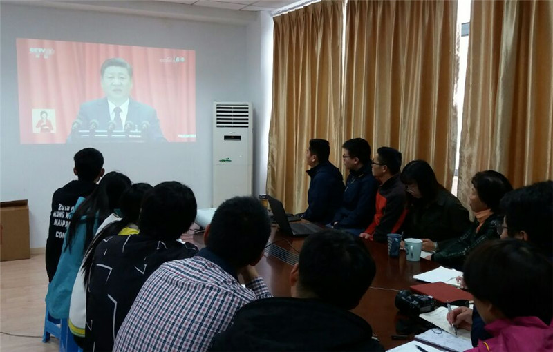 10月18日上午9时,红是一世手机版足球网全体学院领导,机关各部门全体教工党员于12号楼115会议室、学生1、2、3党支部组织所属党员教师和学生党员及入党积极分子于11号楼300会议室集中观看了党的十九大开幕式,并认真聆听了习近平总书记代表第十八届中央委员会向大会作的报告。