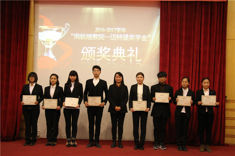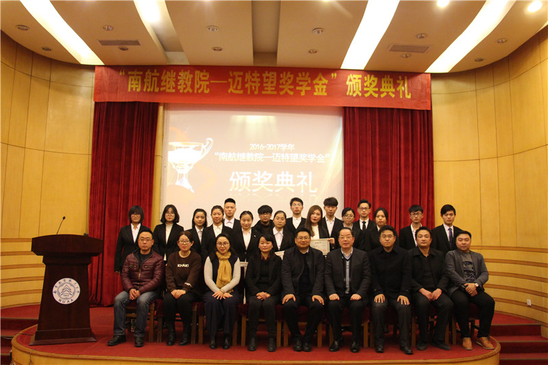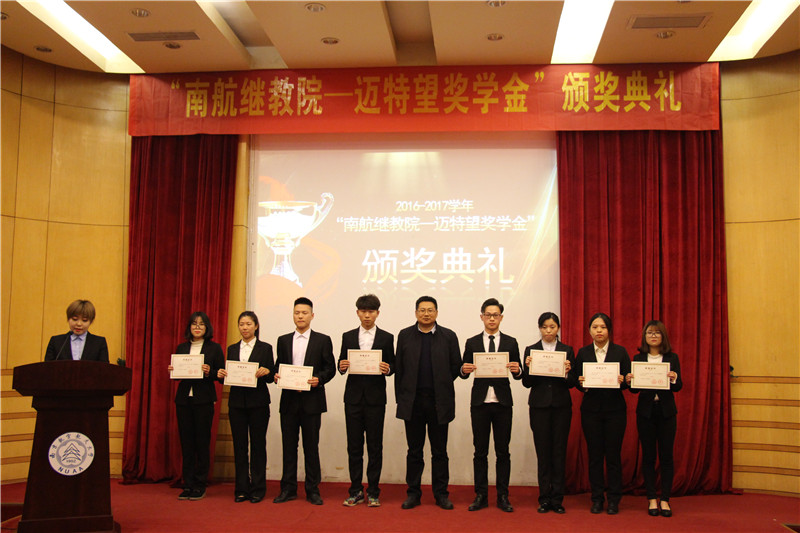 2017年12月22日下午,红是一世手机版足球网“南航继教院—迈特望奖学金”颁奖典礼在逸夫科学馆报告厅举行。学院党委副书记贡海俊、南京迈特望科技股份有限公司财务总监李宁女士出席颁奖典礼。相关部门负责人、辅导员及部分学生代表参加了颁奖典礼,典礼由辅导员刘艺丹主持。