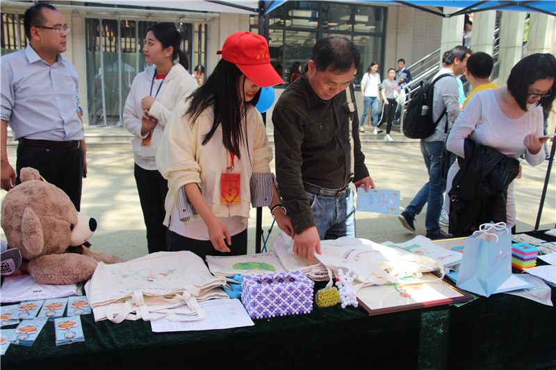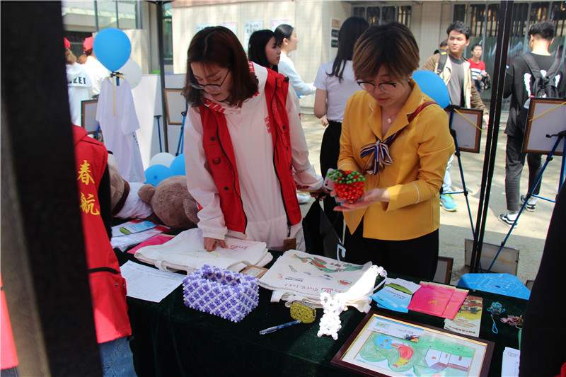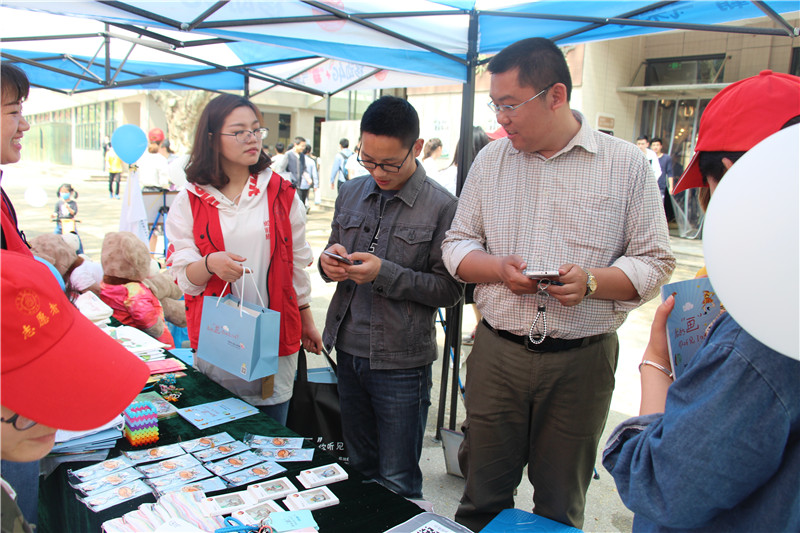 2日上午,志愿者们通过宣传板展示、宣传手册发放、现场咨询讲解、公益义卖等形式,耐心地向现场的老师、同学们宣传和讲解自闭症患者的相关知识,同时向大家介绍此次义卖活动的相关手工作品。