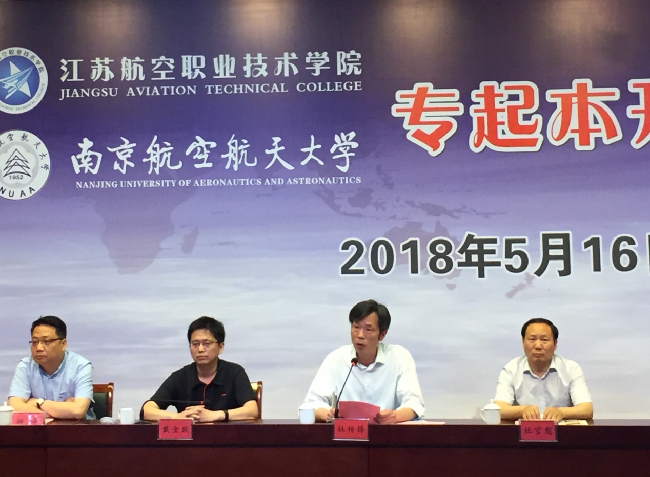 最后,杜传锋、杜官彪和浦黄忠共同举行了江苏航空职业技术学院2018级自考助学“专起本”项目启动仪式。(邵迪莎)
