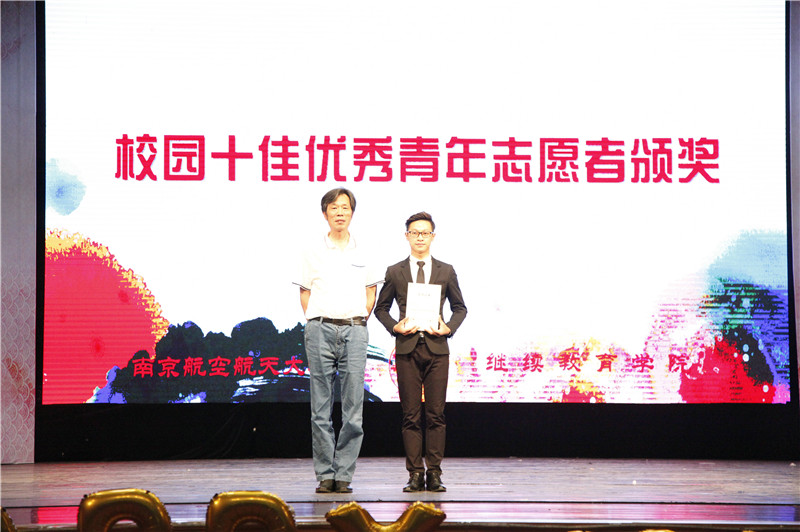 教师代表文格、贡海俊、杜传锋分别为“优秀院级志愿者”代表、“优秀校级志愿者”代表、“校园十佳优秀青年志愿者”颁发荣誉证书。