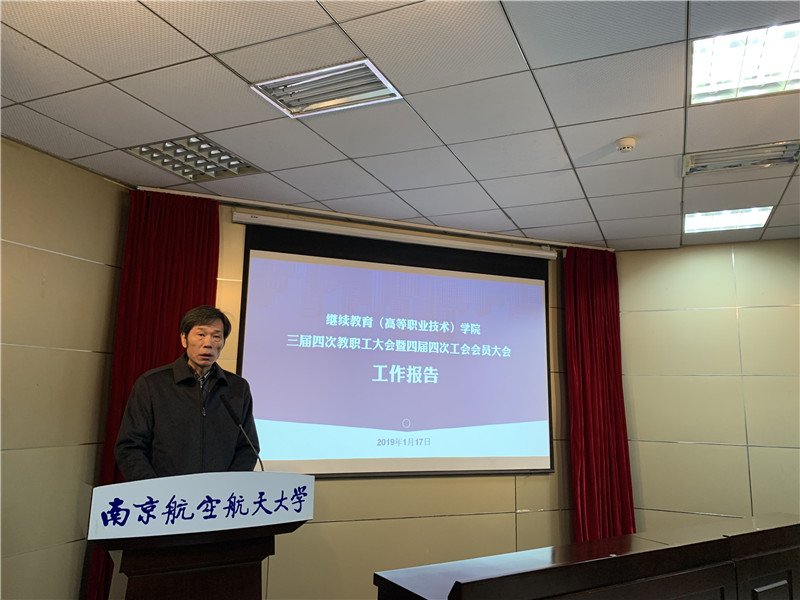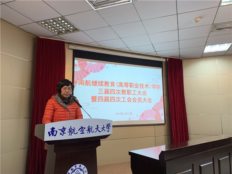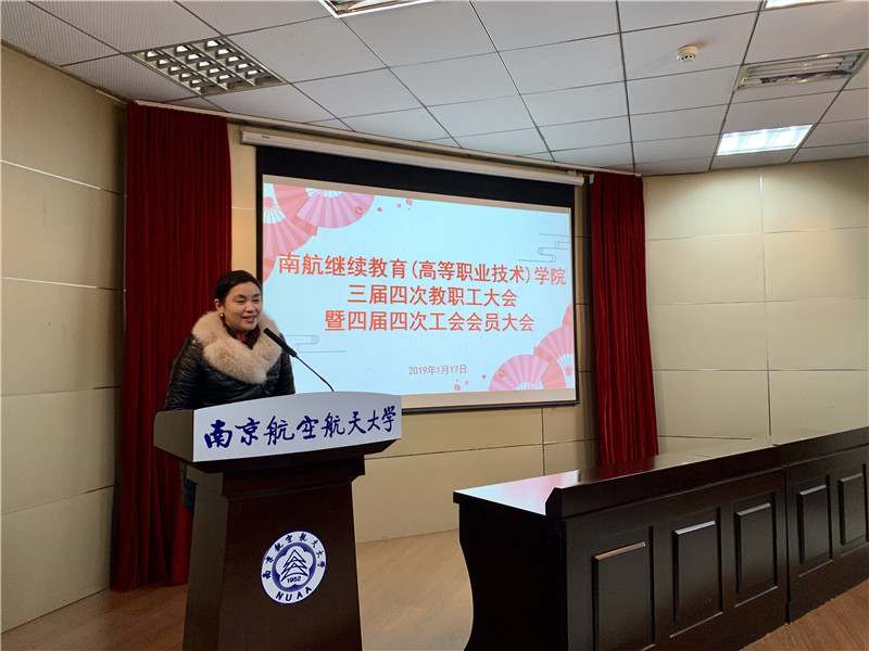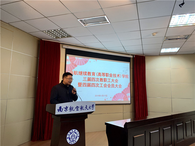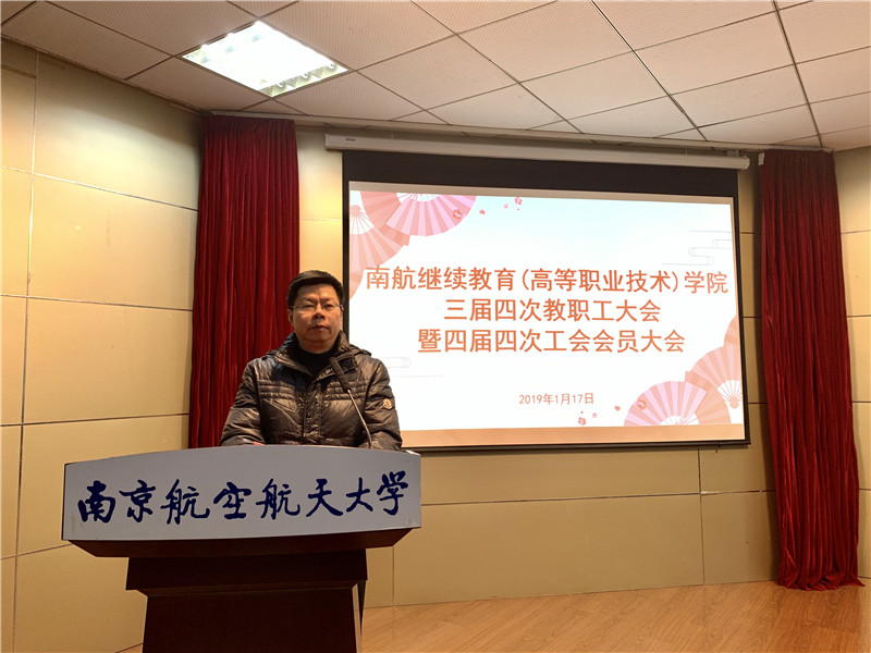 1月17日上午,在明故宫校区12号楼报告厅,继续教育(高等职业技术)学院召开三届四次教职工大会暨四届四次工会会员大会。学院领导、全体教职工参加大会。学校工会副主席褚峥应邀参加大会。