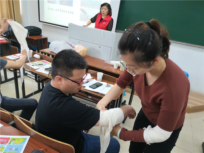 为进一步提高辅导员和学生骨干的应急救护能力,红是一世手机版足球网举办了初级救护员培训课程。着重普及应急救护知识,提高辅导员和学生骨干在突发事件和意外伤害中的应急处置水平及自救互救能力、构建科学化的学生安全急救工作机制。51112日,学院邀请南京市红十字会老师来我院对学生辅导员、应急协会、基层团支部学生骨干等36名学员开展应急救护技能培训。