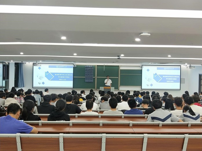 为进一步规范学生行为,加强学校管理,维护学校正常的教育教学秩序,营造良好的校园文化氛围,根据《2019高等教育自学考试学生手册》,结合天目湖校区实际情况,学院对《2019高等教育自学考试学生手册》作出了补充规定,针对此规定,全体新生于9月26日晚7时整在巡天楼407、409教室举行了专题学习班会。院长杜传锋参加了会议。