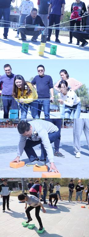 游览结束后,在学院工会老师的组织下,教工们打乱原来部门建制,被重新划分成4个小组,在各组组长带领下开展了趣味十足的“摸石头过河” “合力建塔”比拼、拍摄了创意合影和时尚的抖音视频。