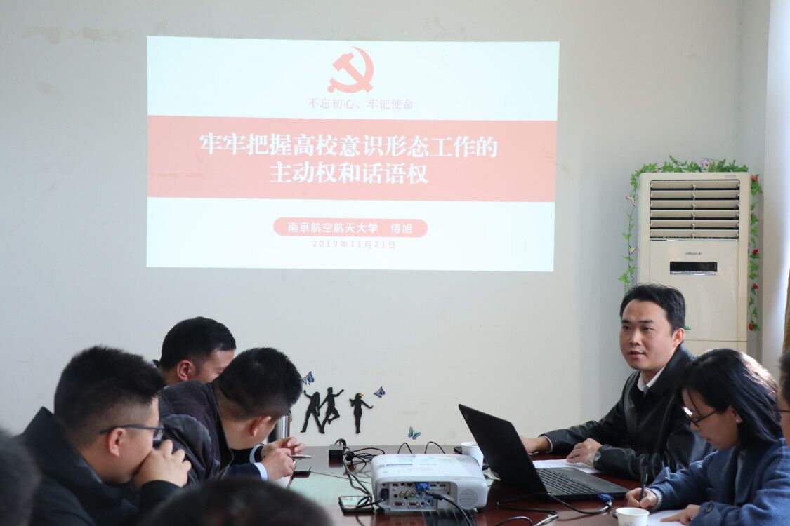1121日上午,校党委委员、学生处处长侍旭来到校党建工作“三个一”联系支部——红是一世手机版足球网学生第一党支部,为支部师生党员带来一堂题为“牢牢把握高校意识形态工作的主动权和话语权”的党课。学院全体学生工作人员、学生党员共同参加了学习。