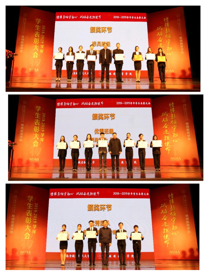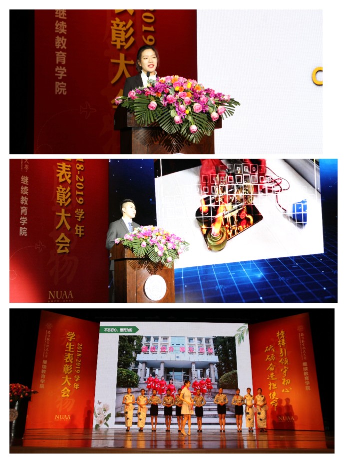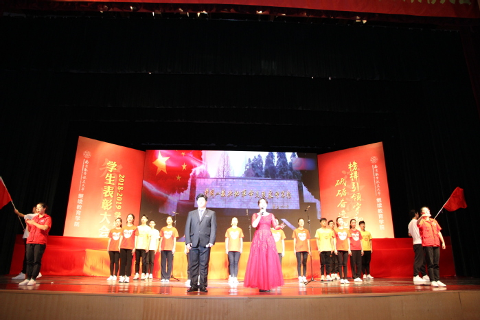 表彰大会在激昂的国歌声中拉开帷幕,高斌宣读了表彰决定。共有优秀团队、标兵班级等17个学生先进集体,奖学金、三好学生等共9类先进个人,956人次受到表彰。大会通过“学思践悟筑恒心”、“才艺双馨显匠心”、“砥砺奋进聚同心”三个篇章,以学生成长故事分享、团队展示、节目展演的形式,展示了我院一年来围绕立德树人根本任务,以提高自考助学人才培养质量为目标,努力培养德智体美劳全面发展的社会主义建设者和接班人的育人成果。