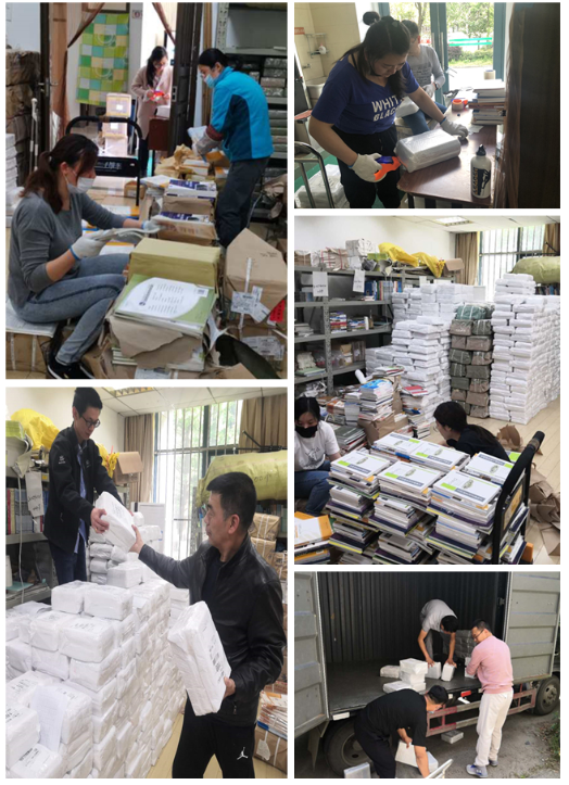 423日,本学期所有教材基本到齐,为了同学们能及时拿到教材,帮助学生线上学习,复习迎考,学院领导班子经过认真研判,果断决策,决定采用邮寄的方式将教材送至每一位学生手中。在学院的统一部署下,424日,自学考试部迅速联动学生管理办公室和教材供应商,建立了三方沟通机制,统计学生邮寄信息、安排专业邮寄团队分类教材。426-27日,天目湖校区4364册教材全部寄出,426-30日,明故宫校区27697册教材全部寄出。