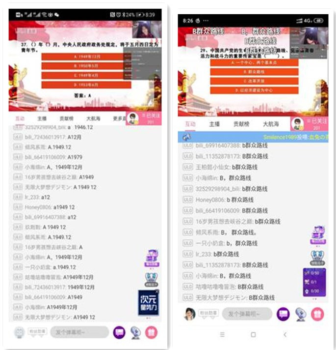 座谈会结束后,第一期线上直播答题活动随即展开。本次“大学习”共包括线上直播答题6期、每日答题30期,活动贯穿整个五月。活动旨在通过以党建带团建的形式,党员做表率、带头行动,带动激发青年学生提升理论水平,坚定理想信念,保持青年党员、团员政治理论学习热情不下降,将学院的学习热潮再次推向深入。