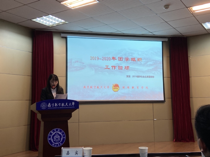 2020届学生会主席卢瑶瑶代表团学组织在会上发言,表示将以团结协作、开拓创新的精神自勉,不负师长们的期待,阔步向前、善作善成,在继承和发扬学生组织优良传统的同时,搭建新平台,开创新局面,进一步推动学院团学组织走向高质量发展,为学院事业改革发展做出新的更大的贡献。