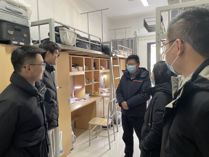 2月20日、27日,学院天目湖、将军路、明故宫三校区完成2022年春季学期学生分批返校、返宿报到工作。院党委书记高斌、院长王伟、院党委副书记张晓燕分别于返校、返宿期间走访学生宿舍,看望关心学生,并与同学们亲切交流。