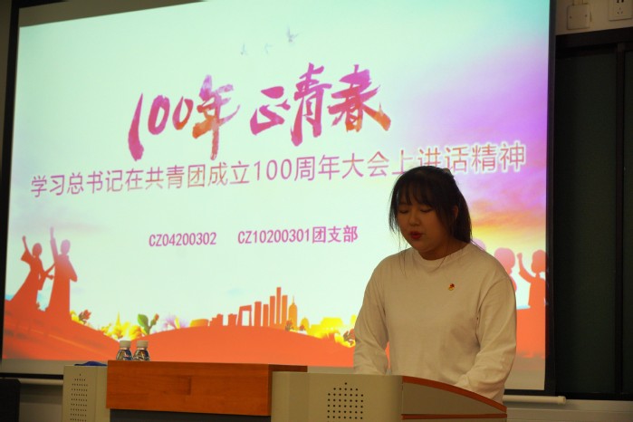 在领学环节,CZ04200302团支部的张玉玺同学从共青团的百年青春历程、共青团为实现中华民族伟大复兴中国梦所作出的重要贡献、共青团和青年工作的历史经验以及如何做好新时代共青团工作四个方面,带领与会师生共同学习了总书记重要讲话的主要内容。
