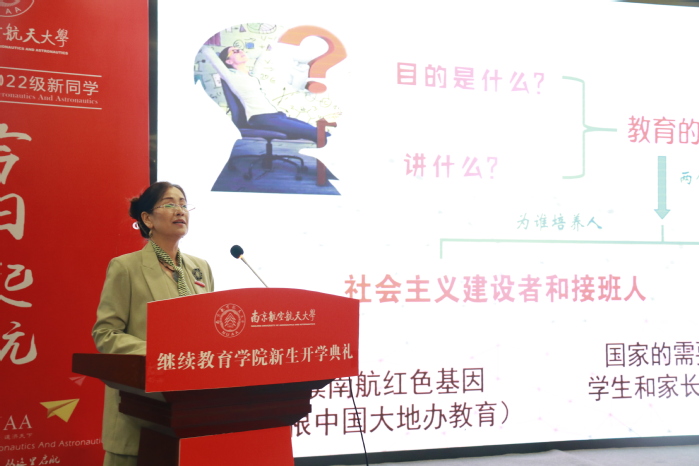 典礼第二阶段,副院长赵宇对新生进行了专业学习教育。她围绕“德、智、体、美、劳”五个方面,结合学院学生培养的特点,从自考助学项目的性质和专业课程等方面,详细、生动地向新生解读了在大学,应该“学什么”“怎么学”的问题,赵院长鼓励同学们脚踏实地,懂得坚持,学会规划,早日成为高层次、高技能、高素质的实用型人才。